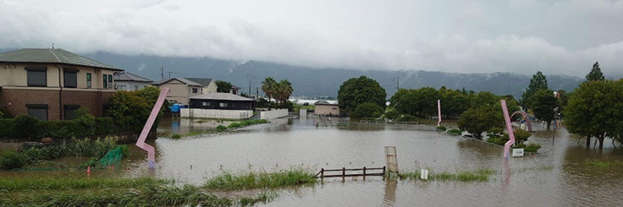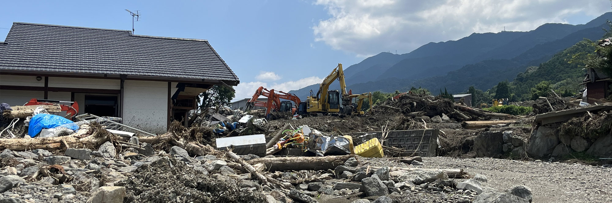 近年の気象変動に伴い、各地で自然災害が毎年のように発生しています。令和5年7月10日の九州北部豪雨では九州各地にて水害が発生しました。梅雨前線の活動に線状降水帯の発生が重なり、7月10日未明から記録的な豪雨となりました。福岡県久留米市では大規模な土石流の発生や、巨瀬川が氾濫し家屋の浸水など例年の水害を上回る甚大な被害となりました。久留米市内の被災地では、これまでに経験のない自然災害であり、大変暑い猛暑の時期と重なり復興には並々成らぬボランティア活動に支えられました。
