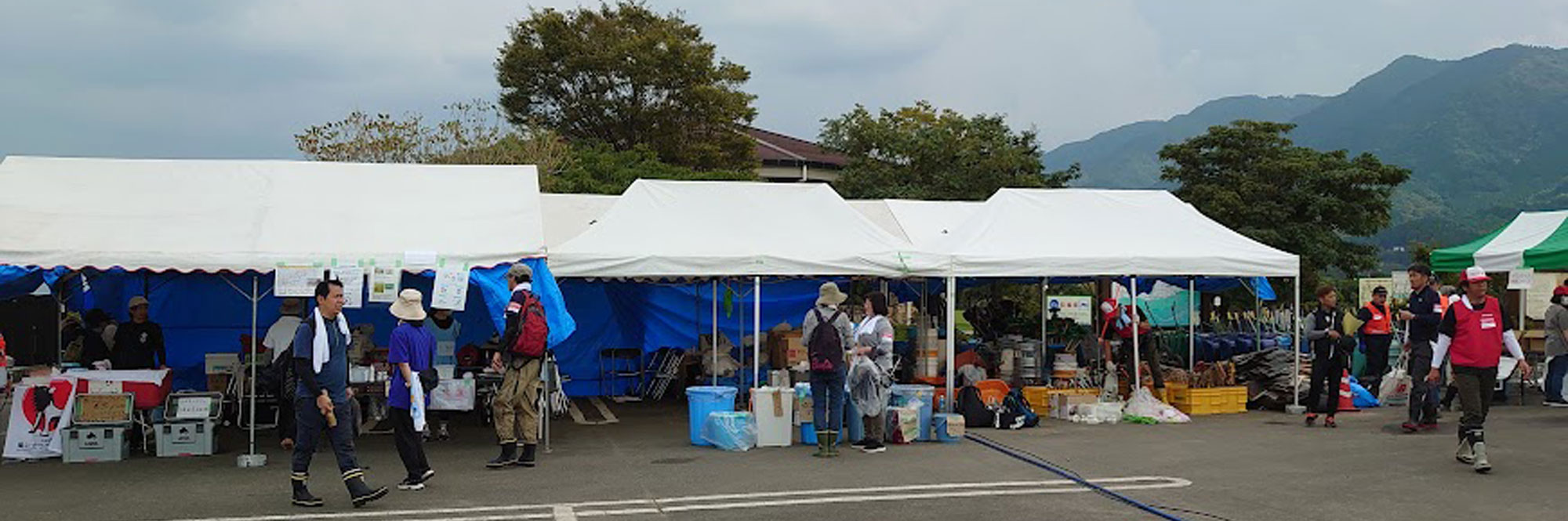 久留米市社会福祉協議会災害ボランティアセンター東部サテライトが久留米ふれあい農業公園内に設置され、被災直後より全国各地から物資が届き、ボランティアの方は一日平均200名来られ、炎天下の中、土砂のかき出しや家屋の掃除などが毎日休みなく続きました。復旧活動にご尽力頂いた結果、令和5年9月中旬に復旧の目処が立つ状況となりました。ご活動頂いた皆様へ改めてお礼を申し上げます。