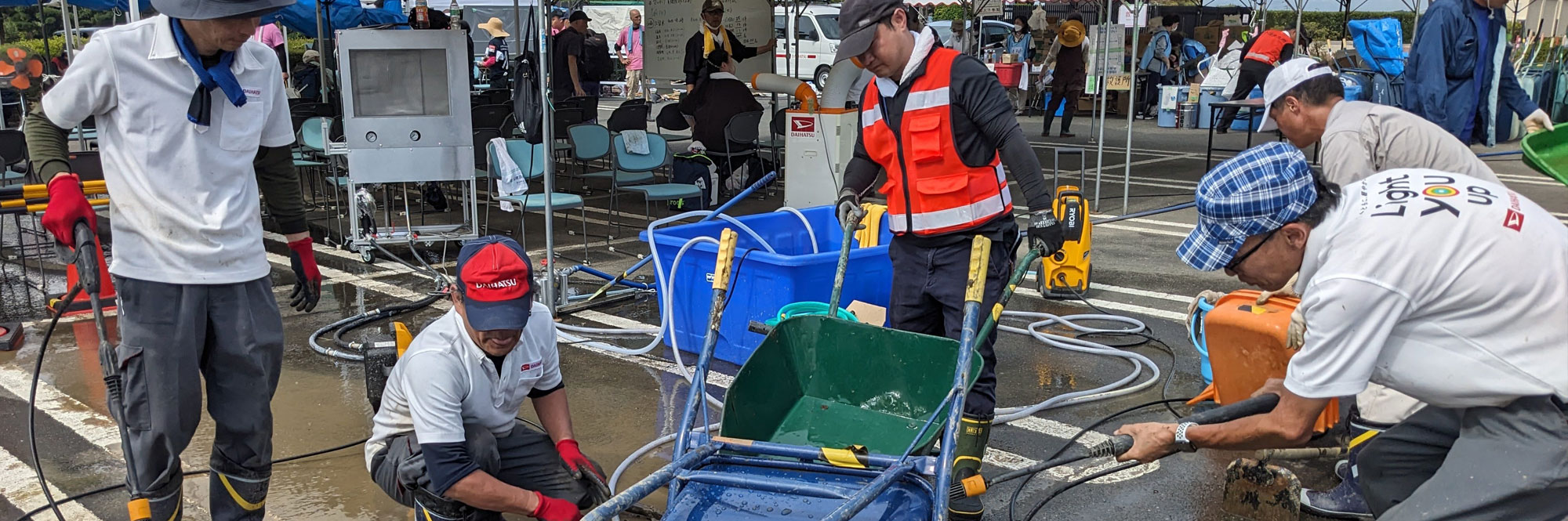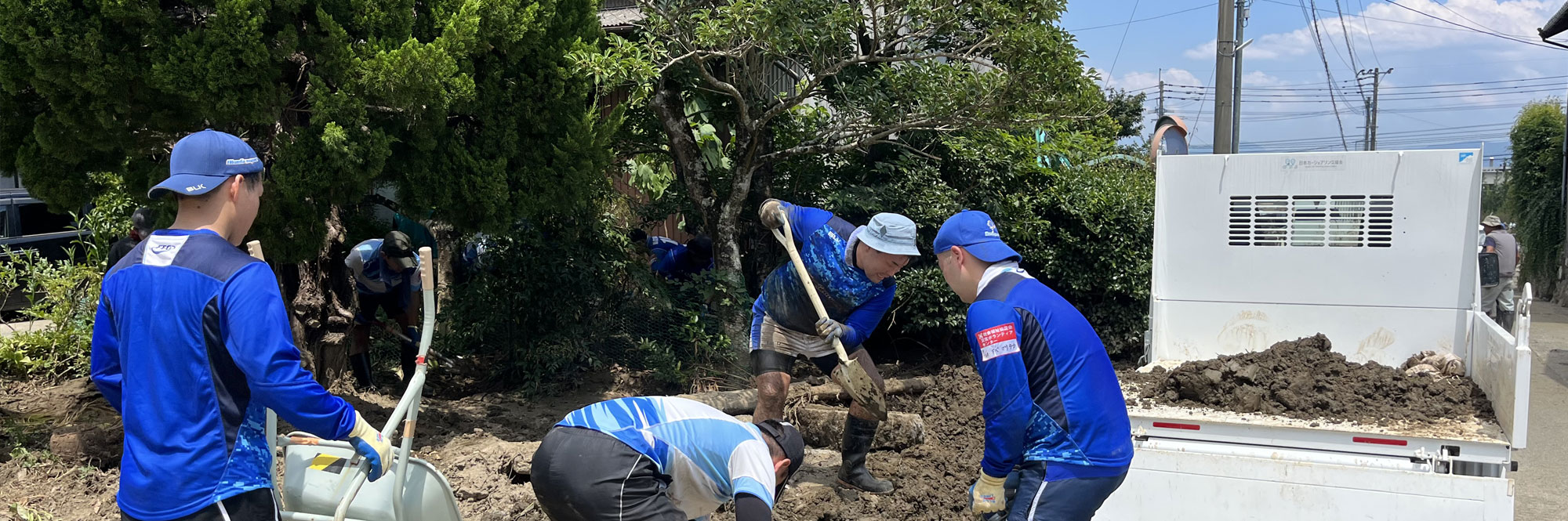 近年の気象変動に伴い、各地で自然災害が毎年のように発生しています。令和5年7月10日の九州北部豪雨では九州各地にて水害が発生しました。梅雨前線の活動に線状降水帯の発生が重なり、7月10日未明から記録的な豪雨となりました。福岡県久留米市では大規模な土石流の発生や、巨瀬川が氾濫し家屋の浸水など例年の水害を上回る甚大な被害となりました。久留米市内の被災地では、これまでに経験のない自然災害であり、大変暑い猛暑の時期と重なり復興には並々成らぬボランティア活動に支えられました。